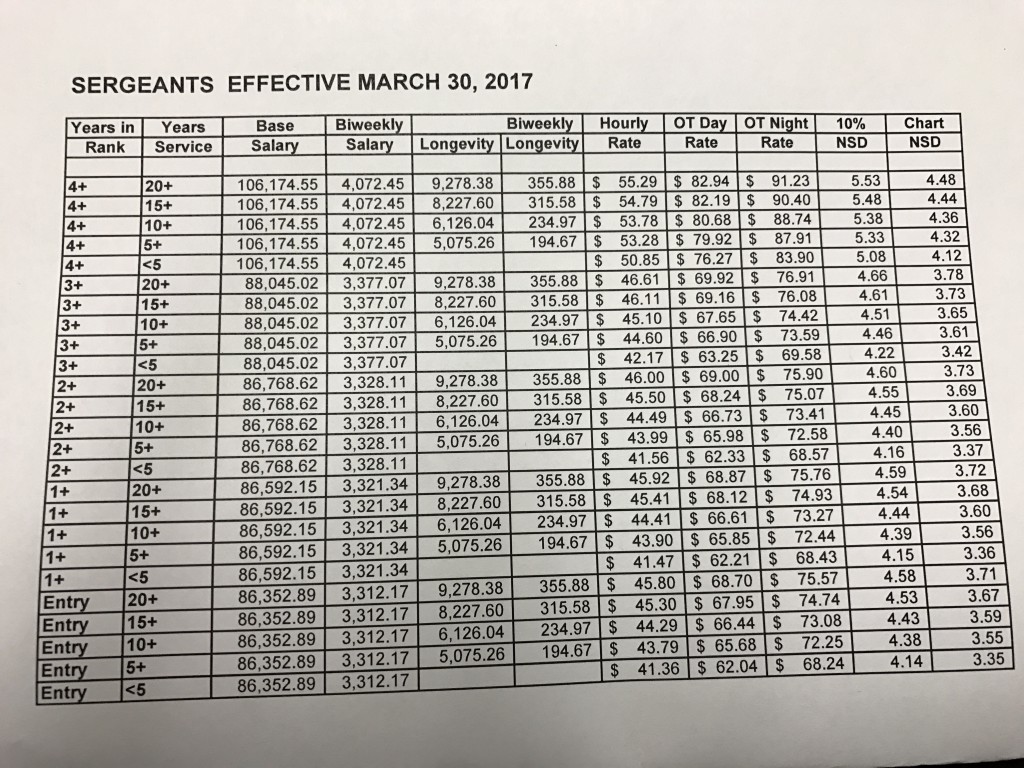 What a scam that pay scale is. I'd like to know the % of sergeants that are in that rank long enough to get to top pay.