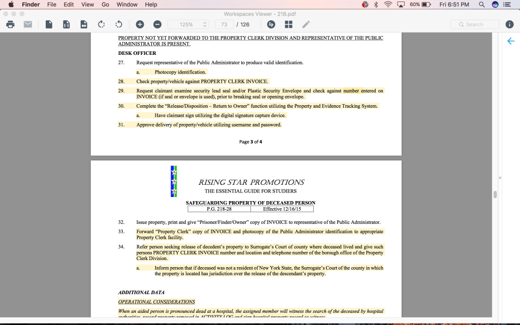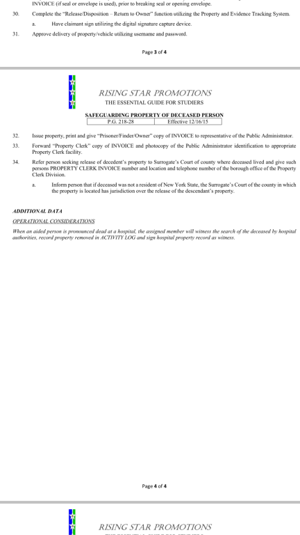You missed the heading when you posted that procedure it says property not yet forwarded to the property clerk AND a public administrator is present.