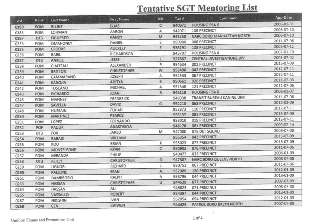 I just received a dept email for the sgt. Mentoring program. They picked from list 180 all the way to 355.