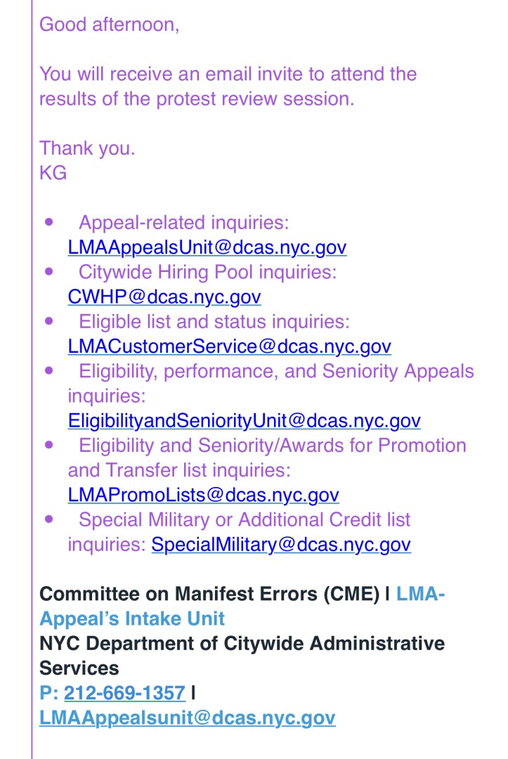 I emailed dcas and asked about finding out what we got wrong and if the protest went in our favor