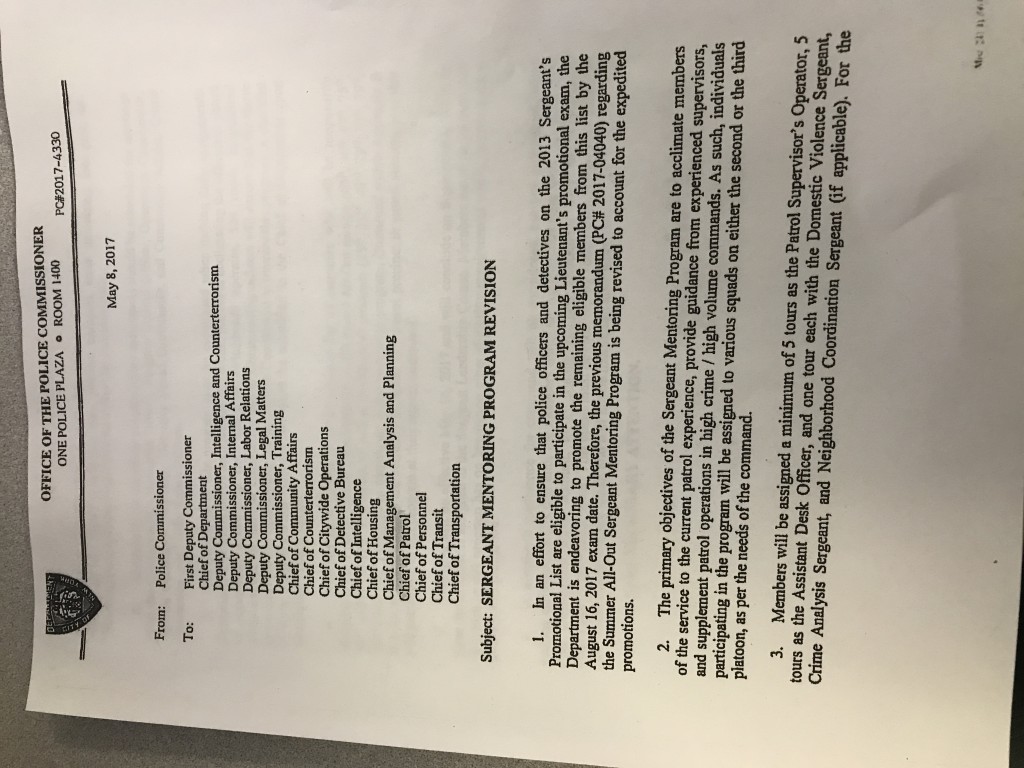Also heads up... whoever is in an administrative position as a PO instead of summer all out will be doing a field training program in various commands. There's 25 cops on that list, it's a new program that they are trying out with the remaining guys and gals on the list. Good luck