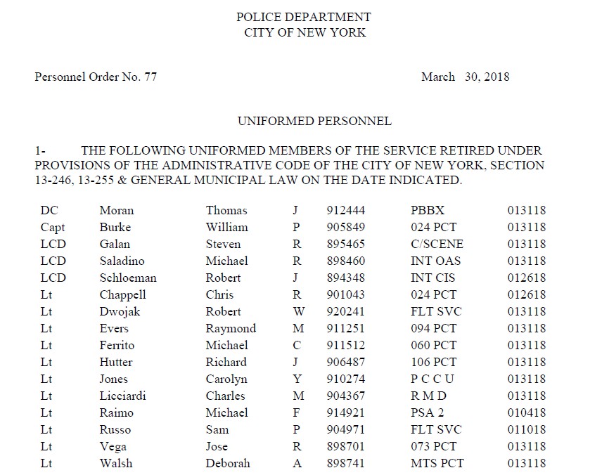 Dept will recieve the list from DCAS by next week. When it will be released publicly by DCAS is up to the PC