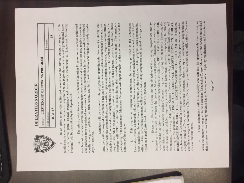 Also perhaps this is more beneficial for a Sergeant whos been off the streets for a significant amount of time. But again Ill complete the program and then update with a more honest assessment. Also there is a new Operations order regarding Lts mentoring.