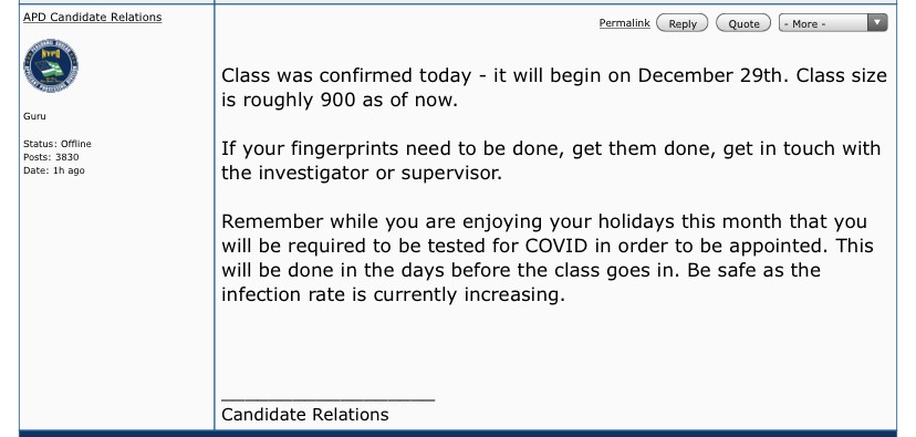 I heard there is gonna be a class, itll be no less than 75 and by the end of the week they will have a number. My source is a guy at the police academy. Hasnt been wrong yet