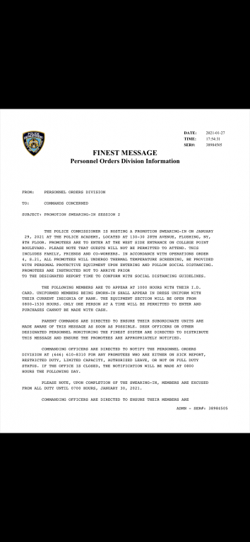 If promotions are Friday. Finest should drop soon. Last promo finest dropped at 1855 hours. The last two Lt promotions had 2 days notice allowing for pictures for the day before