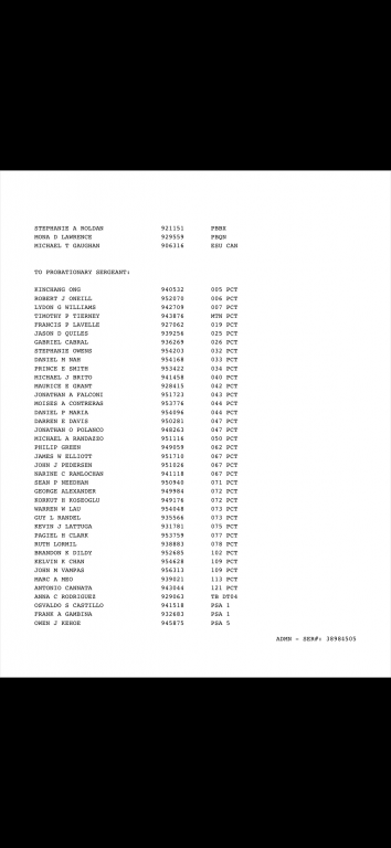 Idk the numbers. I just know the same speaker has been scheduled the first week of February for both Sgt and LT Bmoc. Promotions are 1/29. So a finest has to drop by Wednesday so the new Lts can take there pictures the day prior