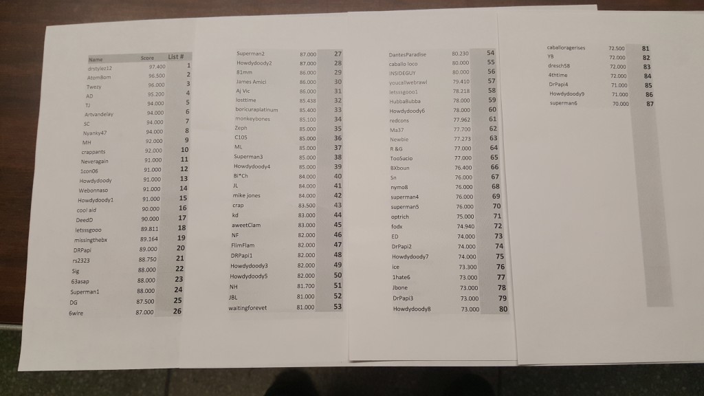 I HAVE CREATED THIS SPREADSHEET SO WE CAN HAVE AN IDEA OF THE LENGTH OF THE LIST AND YOUR POSITION BASED ON YOUR SCORE. I ONLY HAVE ABOUT 100 SCORES...NOT HELPING. PLEASE POST REAL SCORES..MAKE SURE YOU ADD SENIORITY POINTS CAUSE YOU KNOW THEM.
