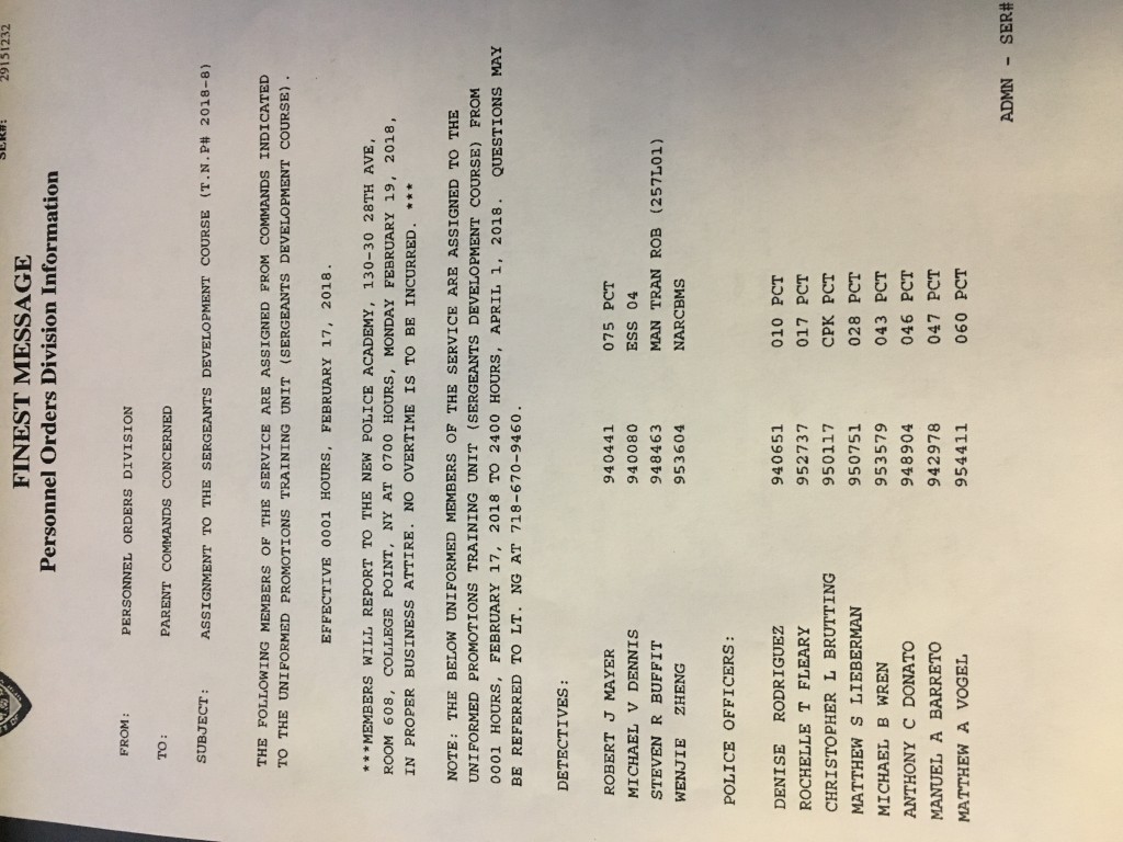 As of February 2, there are 36 sergeant vacancies (which includes allotment for SDS/SSA), and an additional 24 on terminal leave.