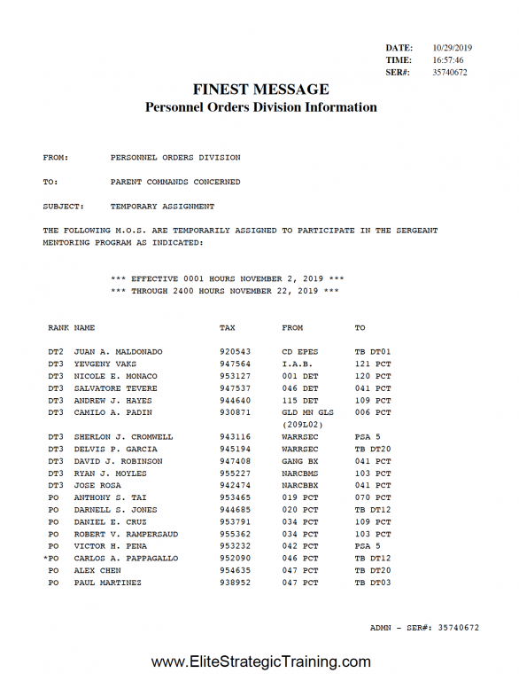 FINEST for the 48 UMOS going to Sgt's mentoring is attached.