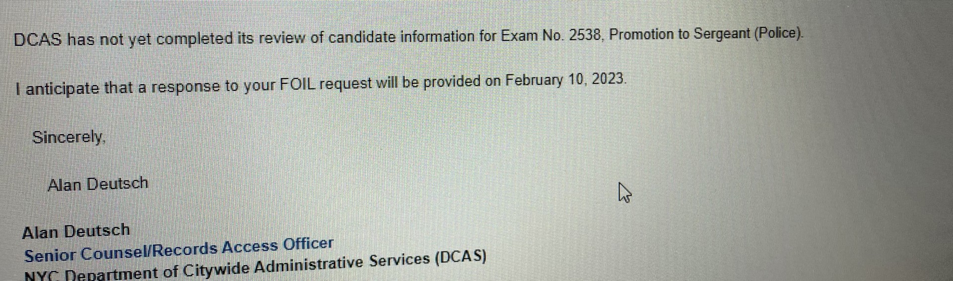 I only agree with what was said above about there would be a cascade of cops emailing and calling DCAS if the list wasnt out like two days from when they say it would be out. We are our own worst enemy.