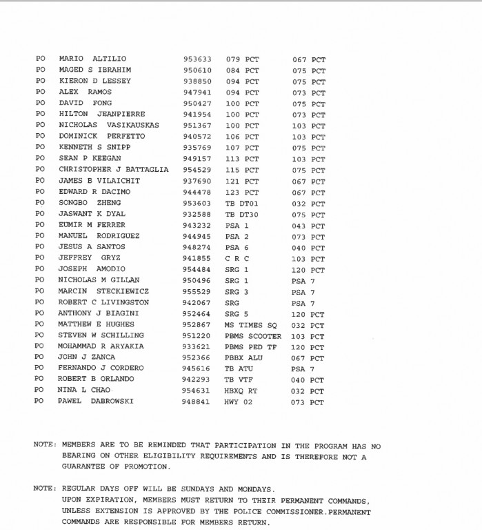 My precinct has stuck to the finest. Haven't used us for anything other than going out with the Patrol Supervisor or assisting with the desk. They let us choose what we want to do every tour. Apparently, they were originally going to give us travel time, but figured out if they use us exclusively for training purposes, they don't have to pay us. It has not been an issue to get a day off in my command at least.