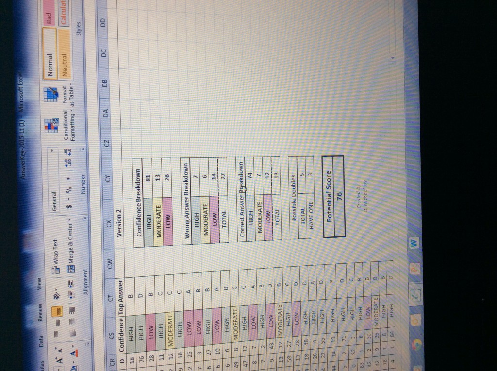 Anyone else enter their answers in to two different excel programs and get two diff potential scores? And yes I double checked the letters were the same on both?