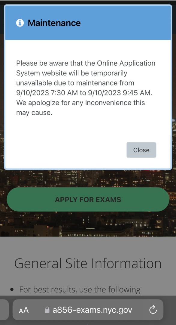 DCAS is performing a scheduled maintenance of their Online Application System this Sunday, 9/10/23 from 7:30 am to 9:45 am. That being said, I dont know if this is specifically pertaining to our exam or its likely attributed to something they do every so often. Guess well see tomorrow if anything changes in our scores.