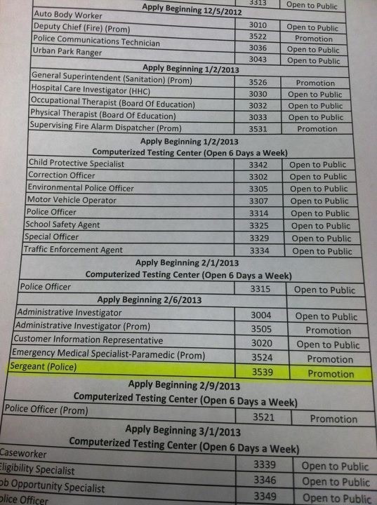 This would be consistent with what DCAS has done in the past, attempt to establish multiple lists. The problem is when they do this they tend to stop promoting on one before the 4 years expire and promote off the newer one. Sgt's lists only take at least months to establish historically, but the 2003 exam took 15 months (lawsuit held it up before a judge tossed the suit and the list was established) the 2006 exam took 10 months, the 2007 exam took 12 months, 2008 exam took 8 months, I am having a hard time remembering how long the 2009 exam took?