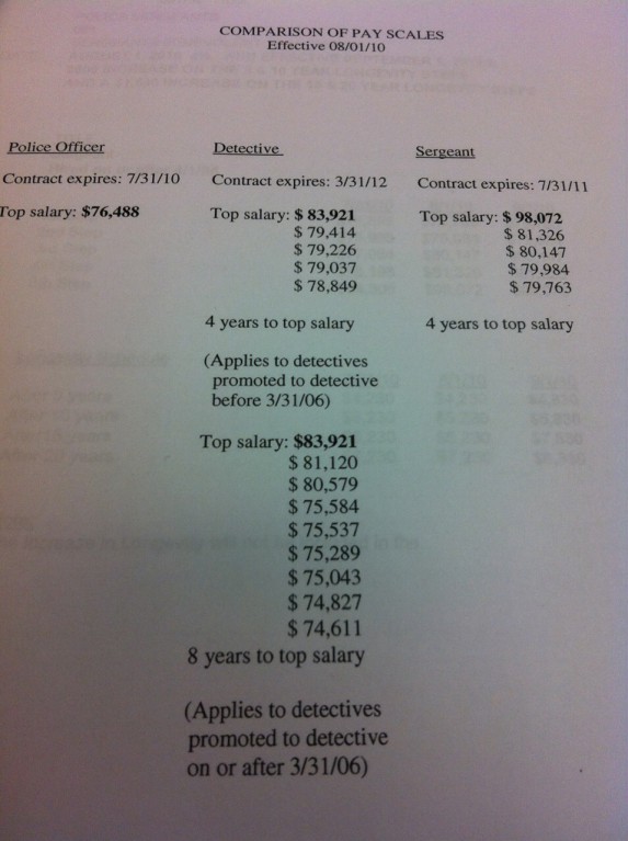 The reason why this happened is because that person who was promoted to a Sergeant was not at a Top Pay Cop's salary of $76,488 when they took their Detective promotion. When this happens they are locked into the old 8 year Detective Contract which started the Detective at $74,611, and if this is the case then they would be pay matched according to that 8 year Detective Contract. Therefore they would not go straight to Sergeant's top pay unless they were at a 3rd Grade Detective's Top pay already. Please understand that this Department has to match your pay scale like I said before, they cannot pay you less when you take on your new promotion. This Department will always try to match your pay scale contractual.