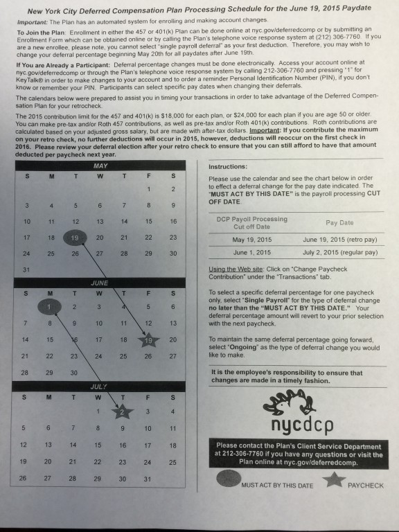 I was told on or before May 19 to submit requests to change deferred comp in regards to retro check. FYI