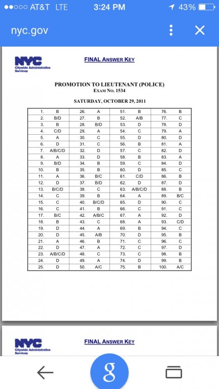 Don't forget question 45 that did not have a correct answer... only wrong ones. Whoever wrote that question is a dingbat. Riddle me this.... when these LTs write these exams they create a ton of questions and DCAS picks which questions they actually put on the exam right? But what about the in basket? Do they create 4 or 5 in baskets and then DCAS picks which one they want? Obviously, the questions have to remain in order since they may build off each other. Just curious how that exactly works.