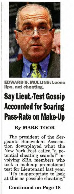 The president of the Sergeants Benevolent Association downplayed what the New York Post called a potential cheating scandal involving SBA members who took a makeup promotional test for Lieutenant last year.