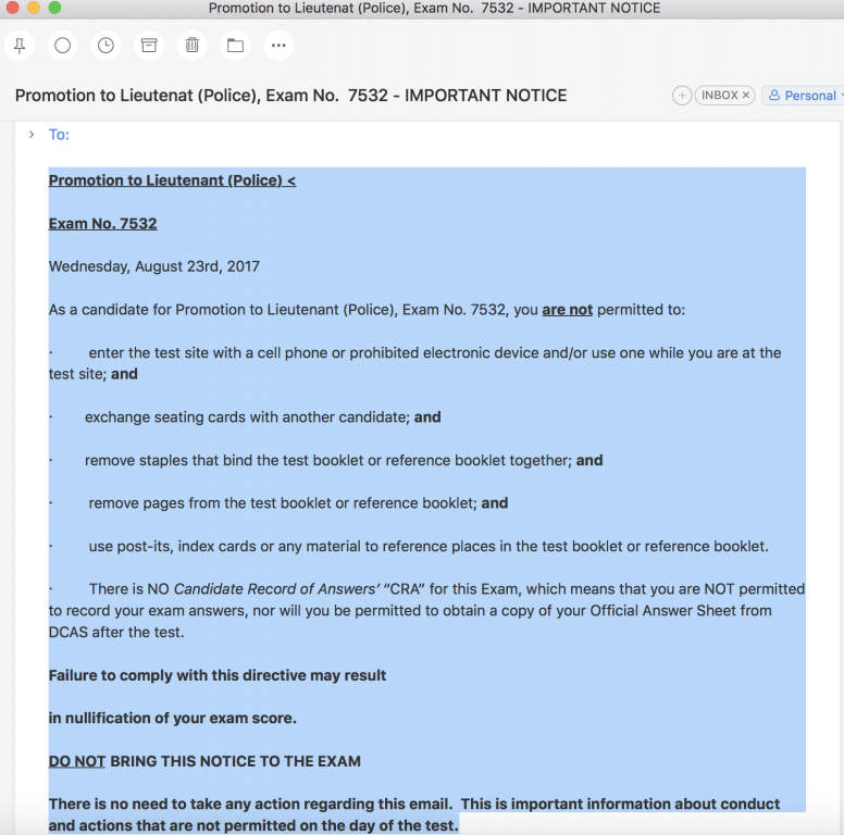 There is no need to take any action regarding this email. This is important information about conduct and actions that are not permitted on the day of the test.