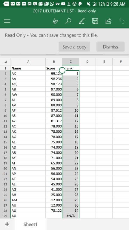 Hello, I have created an excel sheet in order to create the list based on the raw scores plus any additional.