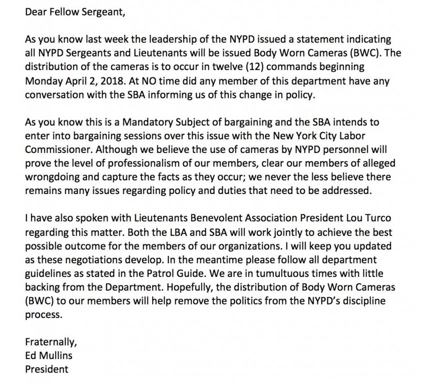 For the record the PBA didn't get a raise based on agreeing to wear body cameras. They just agreed to drop the lawsuit fighting them.