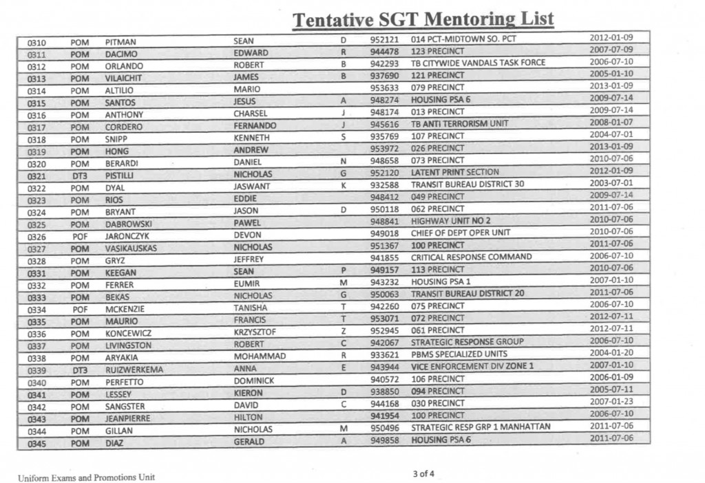 Is this the final list of names, and if so... when will the mentoring begin? Will the cops on this list be able to pick their commands or its random?