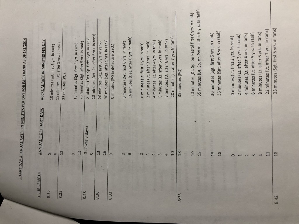 Can someone please post the document that is usually given out at BMOC that shows how many chart days you accumulate per year depending on your tour (8:23, 8:30, 8:57).