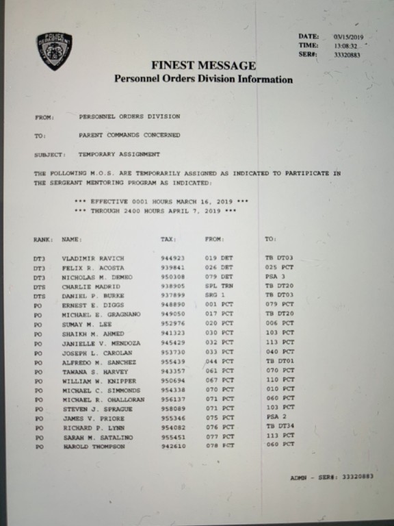 The next class is still going to be about 70-75. This finest message was just for the people who have to go to the mentoring program. Not everyone who's getting promoted has to go to the mentoring program.