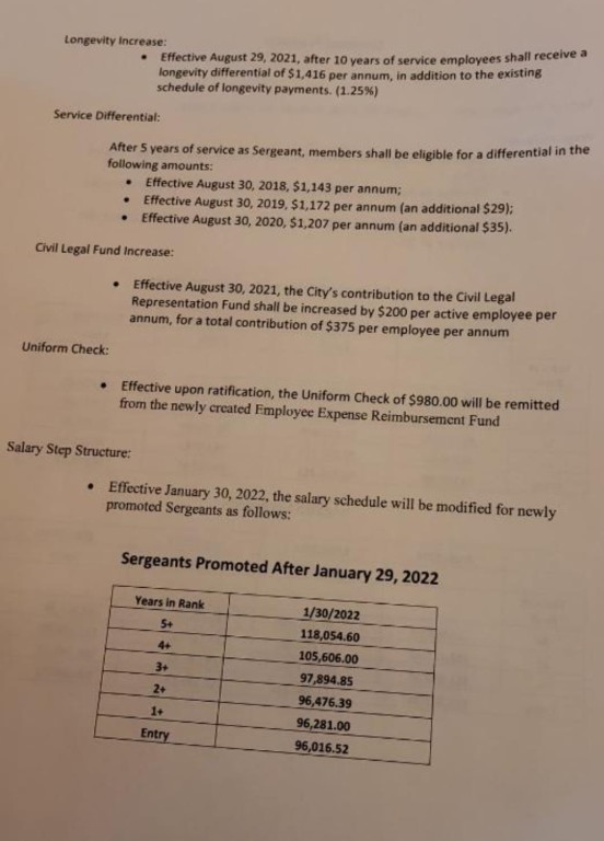 So theres a contract floating around. Looks like 5 steps to top pay for anyone promoted after 1/29 and no more direct to top pay for detectives (depending on what your base salary is) 2.25, 2.5, 3.0.