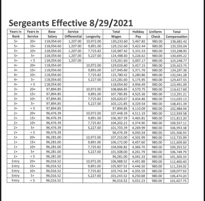 what you make after adding on uniform, holiday, longevity, etc doesn't count - sgt is going to 97.8k to 118k from year 3 to 4 in the new salary chart