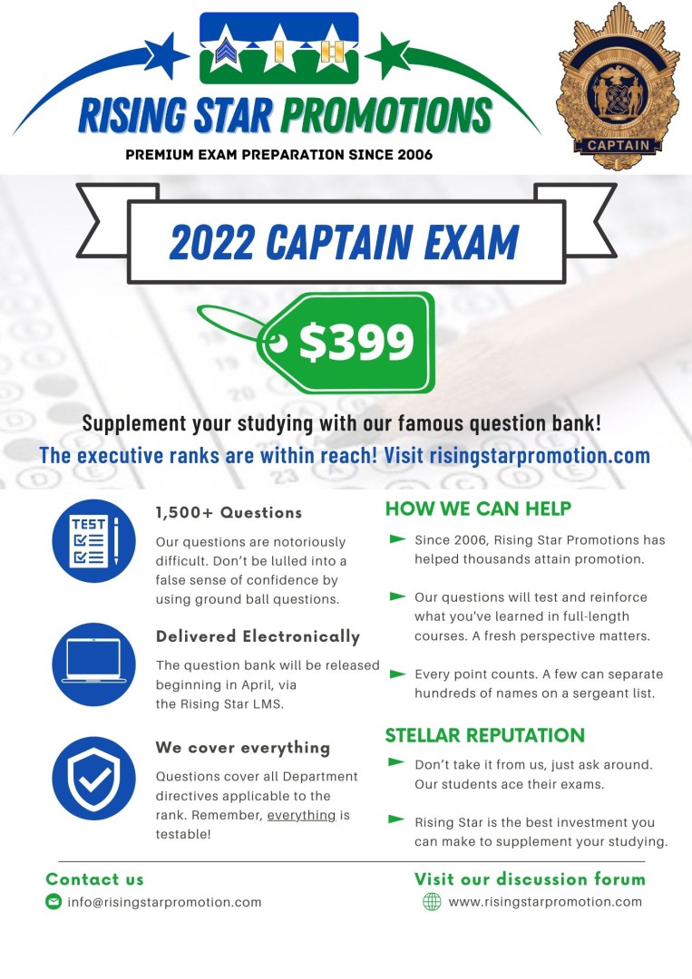 As a reminder, Captain Exam students will get every Rising Star question ever written for all ranks.
