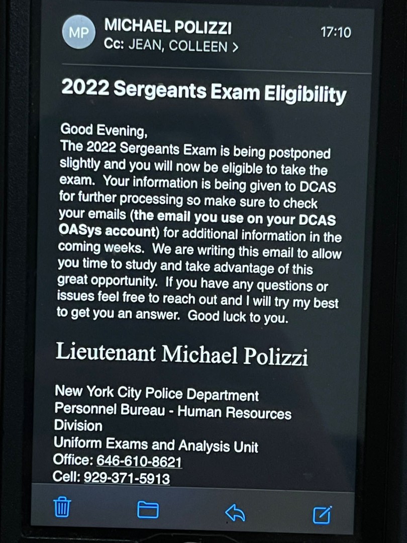 Being told City Hall is requesting the NYPD to postpone the test until further notice. Any truth to this ?