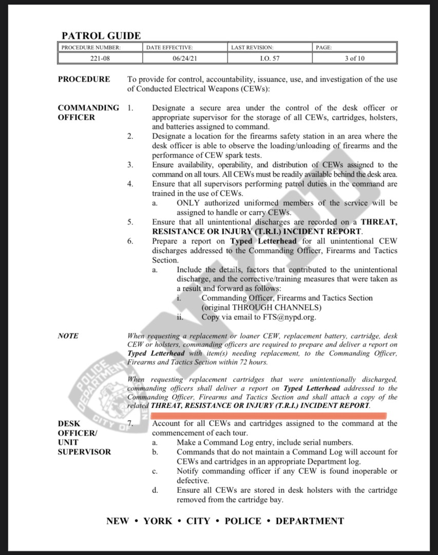 CO - sends a 49 and TRI-Incident Report to CO, FTS= correct nypd patrol guide wording (attached)