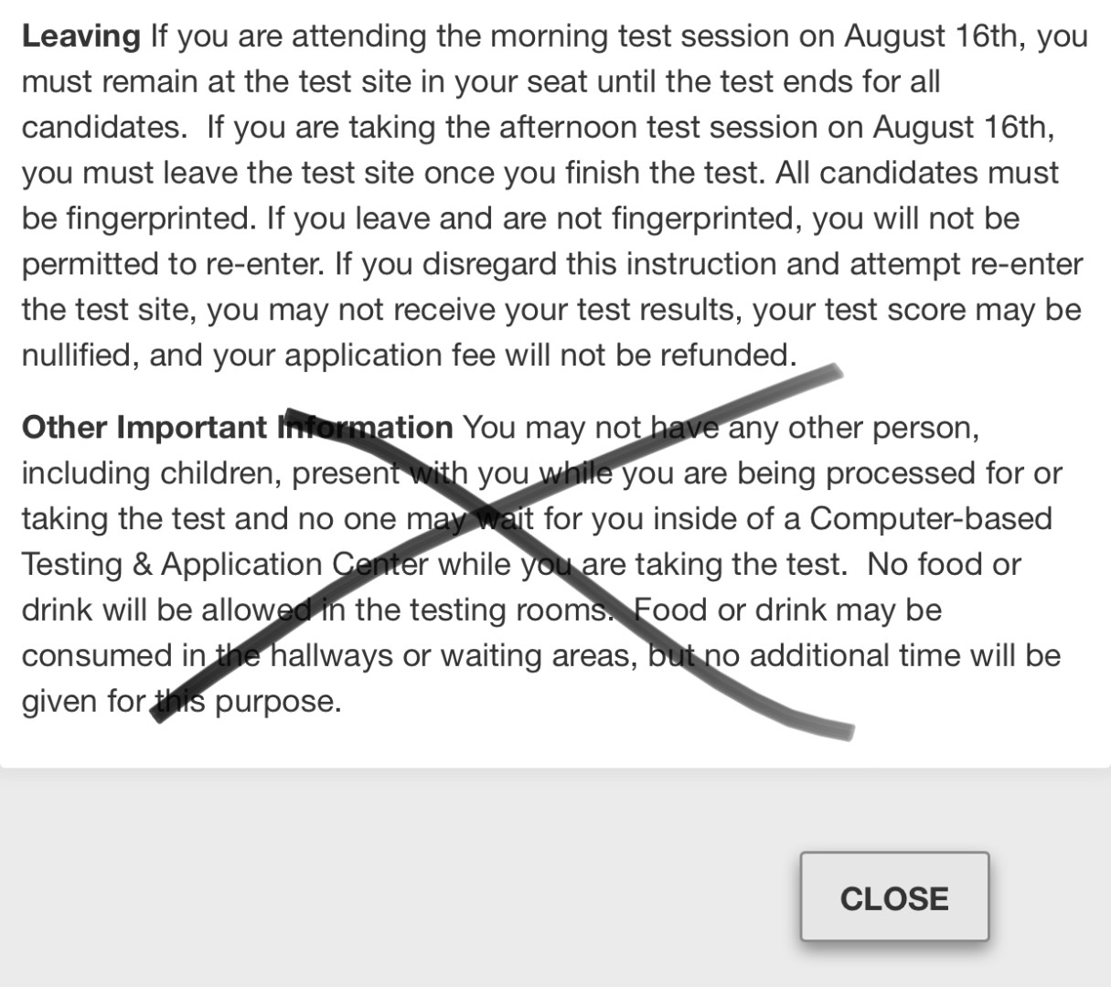 That makes sense. I can see how it can get tense. The simple answer to gain the voluntary compliance of test takers is to leave them wondering if they passed or failed.