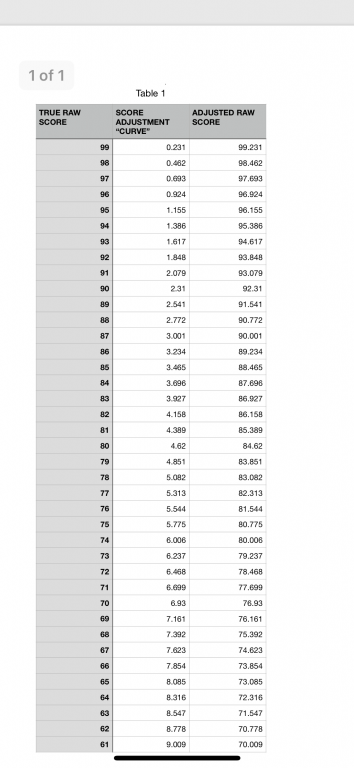 Emailed to me at 0035 hours. Adjusted points towards my final score was 6.006 points then you have to add longevity or "performance and seniority" as they called it. Test was curved, list is real. I feel bad for people who had a legit raw score of 70-71 and get leapfrogged by folks who legit failed. But it is what it is.