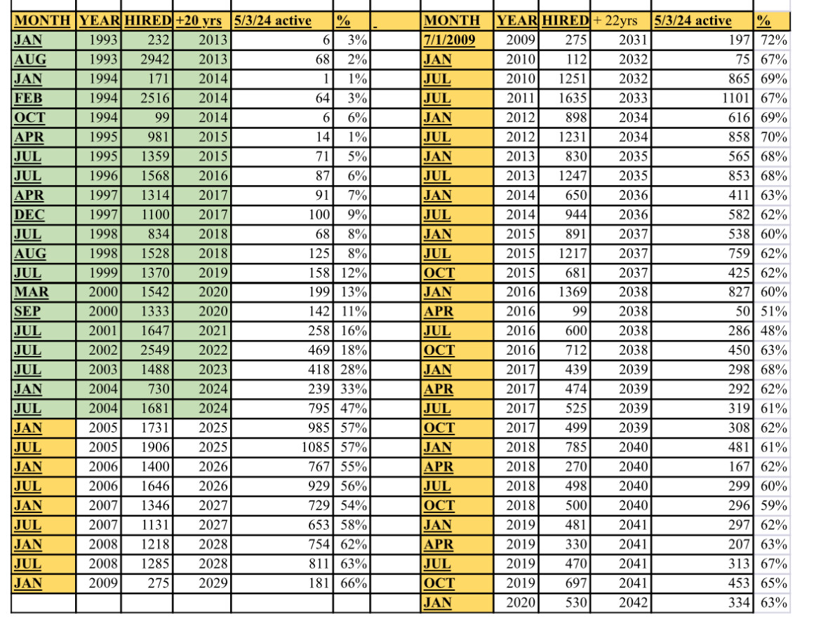Its absolutely insane that if those numbers are accurate, the same percentage of cops from the July 2008 and January 2020 classes have since left the job.