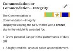 My question is not when do the medals get applied as i have previously supplied a photo of DECAS' instructions on the medals being applied automatically. My question is WHICH MEDAL is it, for a "MPD - INTEGRITY" because there is "MPD" and "integrity, under Commendation", and this seems to be a mix of words From each medal. But its prob just an MPD anyway