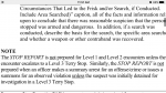 b.Confirm that the STOP REPORT states in plain language a specific suspected felony or Penal Law misdemeanor.