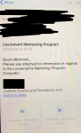I dont know if this is accurate. I know two people who are up this round and they havent received anything (been off patrol for a long time). Also I thought they didnt do emails for Lt mentoring...just transfers. Could be new I guess. Just looking to confirm.