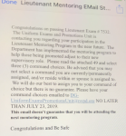I dont know if this is accurate. I know two people who are up this round and they havent received anything (been off patrol for a long time). Also I thought they didnt do emails for Lt mentoring...just transfers. Could be new I guess. Just looking to confirm.